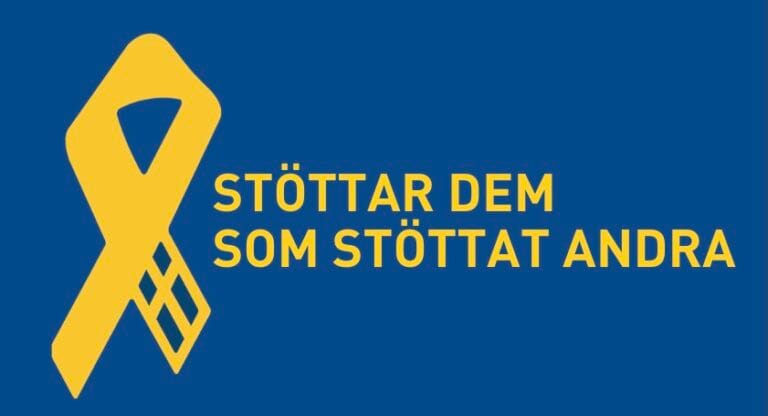 Pikén är blå med Gula Bandet med text Stöttar dem som stöttat andra