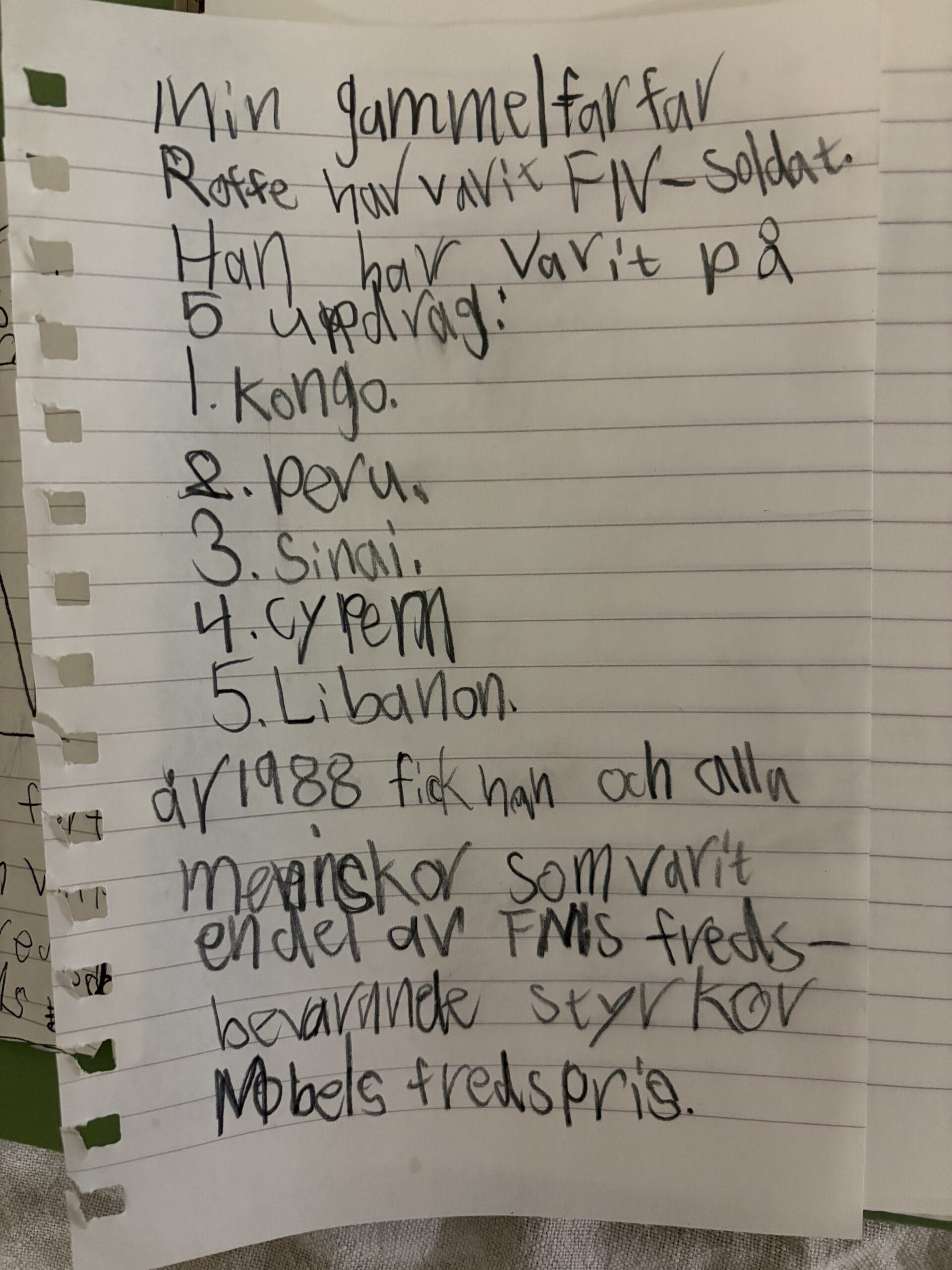 Rolf:s barnbarn, Signe, berättar om Rolfs FN insats i sin skola.