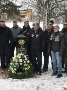 Minnesplatserna är en plats där våra medlemmar har ceremonier såsom Veterandagen och FN-dagen men det är också en viktig plats för att minnas sina kamrater och sin egen insats med svensk flagga på armen.
